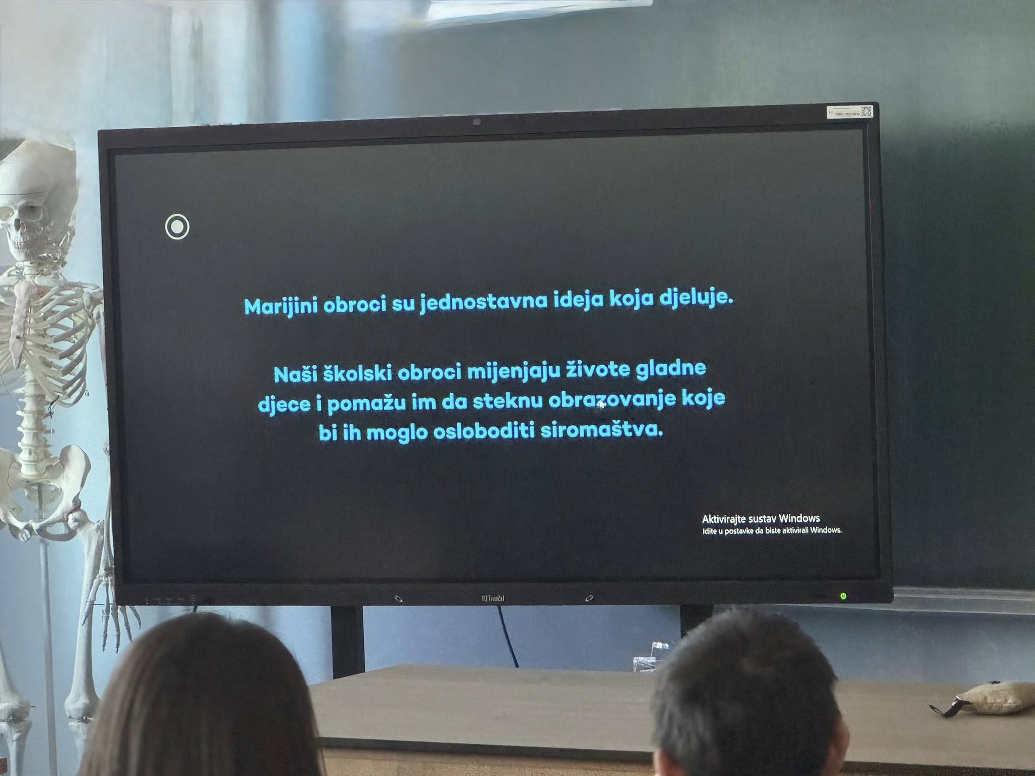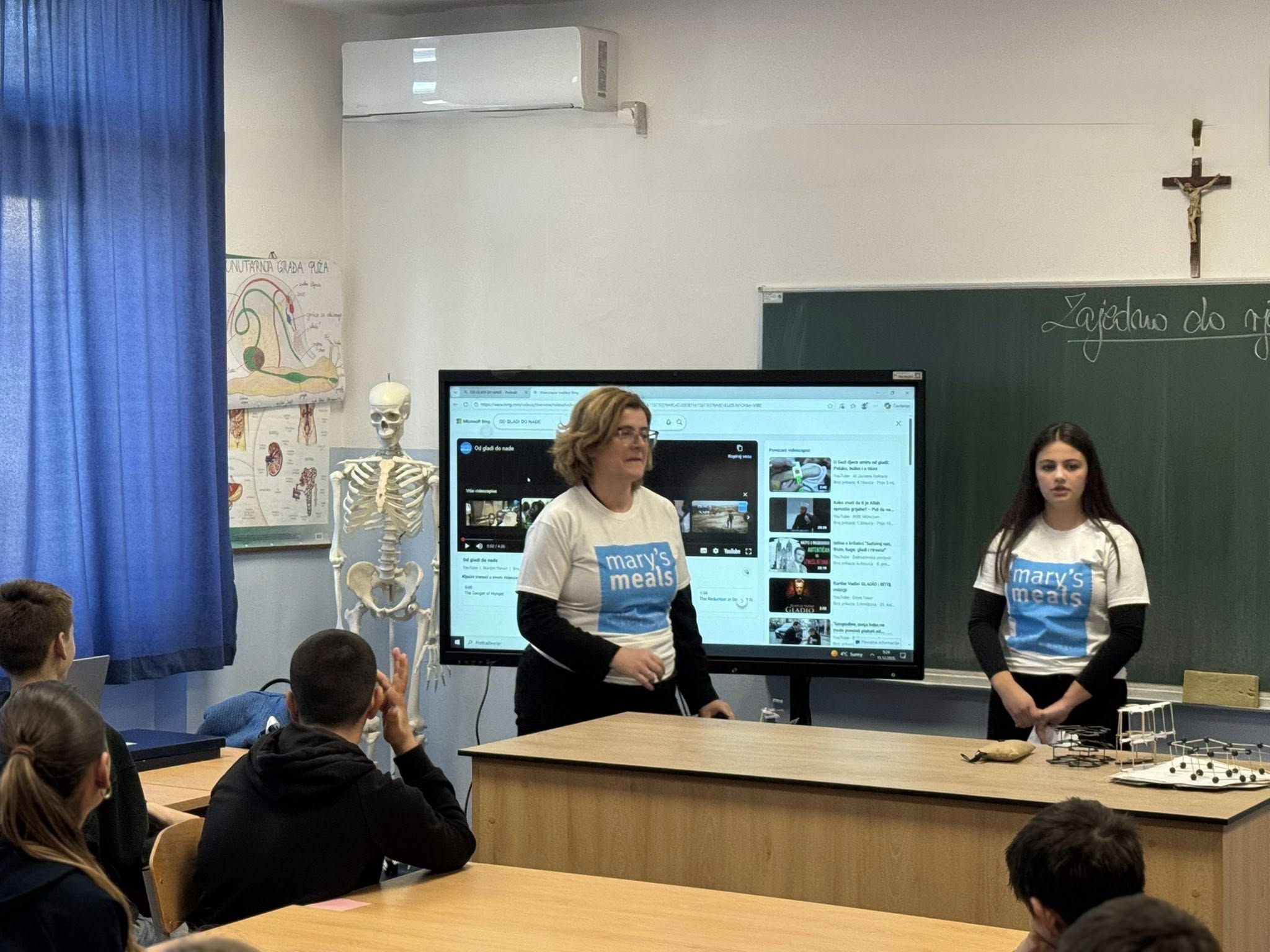 Predstavili su knjigu osnivača organizacije Mary's Meals, Magnusa MacFarlane-Borrowa, "Baraka koja je nahranila 2 milijuna djece" te kroz prezentaciju upoznali nazočne s djelovanjem organizacije u 16 zemalja svijeta. Moglo se tu čuti i o tome koje su dnevne potrebe čovjeka glede nutritivnih vrijednosti, a vrijedni kuhari su za to vrijeme spremili i servirali originalnu kašu, koju djeca u siromašnim zemljama konzumiraju kao dnevni obrok. Poštar je tijekom sata donio prigodne promidžbene letke o organizaciji Mary's Meals, a dječja srca su na papiriće ispisala svoje ideje o uključivanju u ovu veliku humanitarnu obitelj.