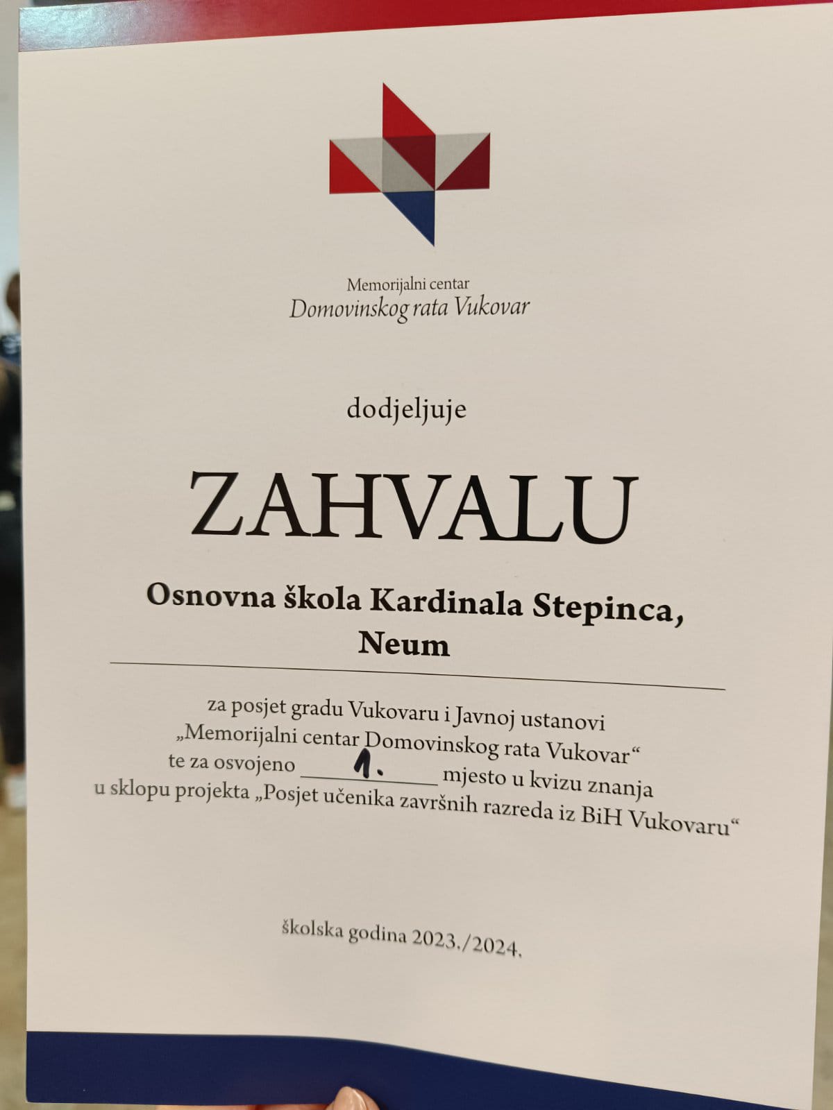 Ovogodišnja terenska nastava iz predmeta Povijest realizirana je od 2. do 4. travnja 2024.godine unutar projekta u organizaciji Memorijalnog centra Domovinskog rata Vukovar pod nazivom „Posjet učenika završnih razreda iz BiH Vukovaru“.