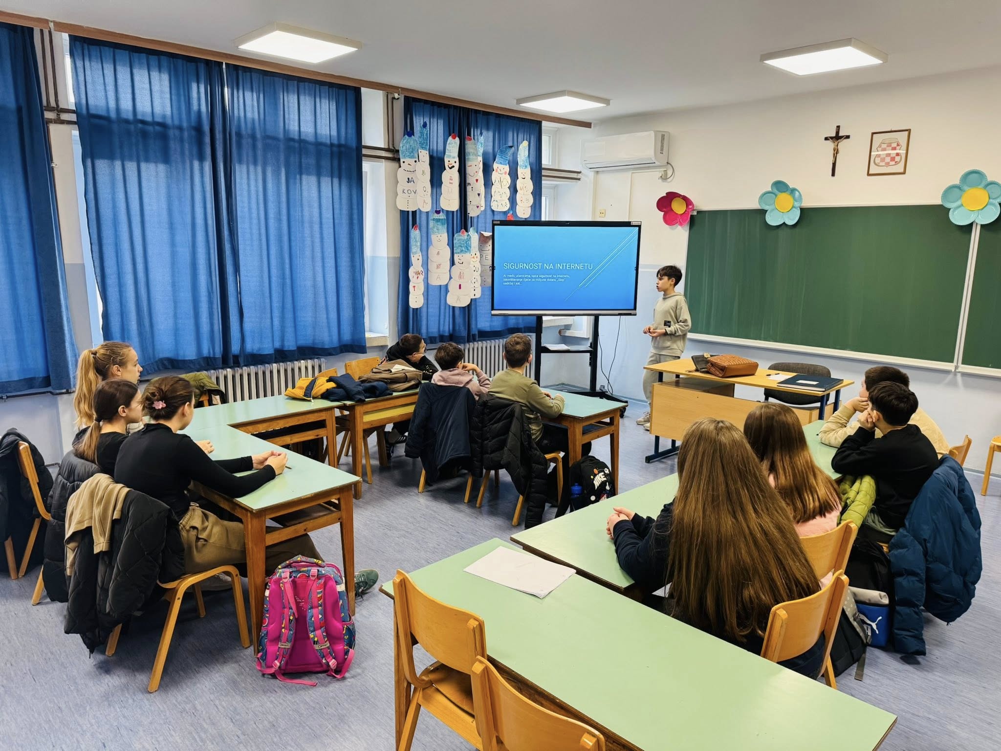 Poseban doprinos radionici dao je učenik Šime Lovrić koji je pripremio vrlo sadržajnu i zanimljivu prezentaciju. U svojoj prezentaciji istaknuo je najčešće oblike opasnosti na internetu, poput krađe identiteta, lažnih profila i elektroničkog nasilja, ali i konkretne savjete kako se zaštititi. Njegovo izlaganje potaknulo je učenike na dodatnu raspravu i razmjenu mišljenja.