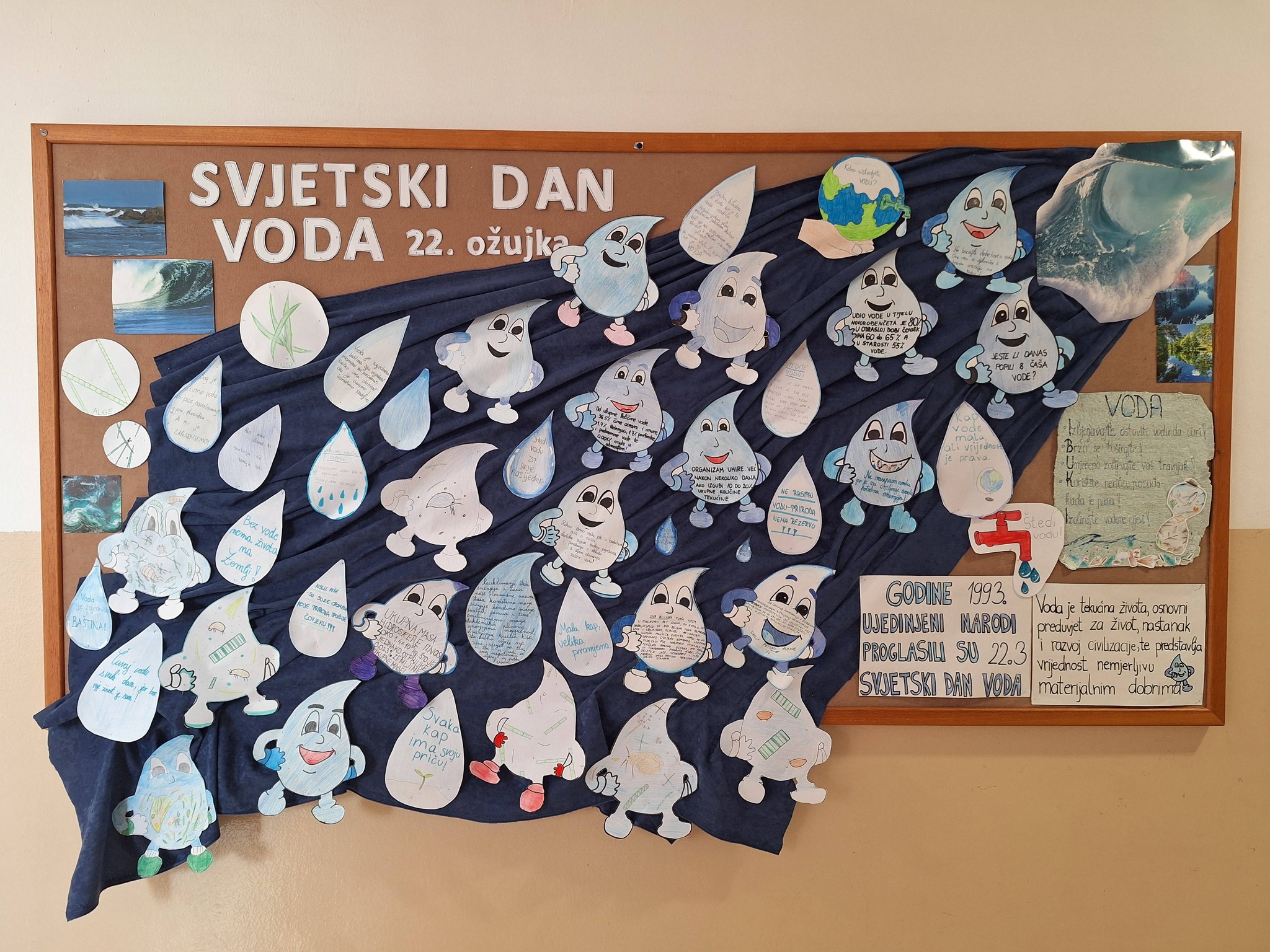 Na radionici školske eko sekcije, osim upoznavanja s tako važnim projektom , pogledali smo i prezentaciju učenika IX.a razreda Mihaela Miškovića o značenju vode i opasnostima zagađenja, a učenici su uredili pano na temu Svjetskog dana voda s prigodnim porukama ispisanima u kapljicama vode.