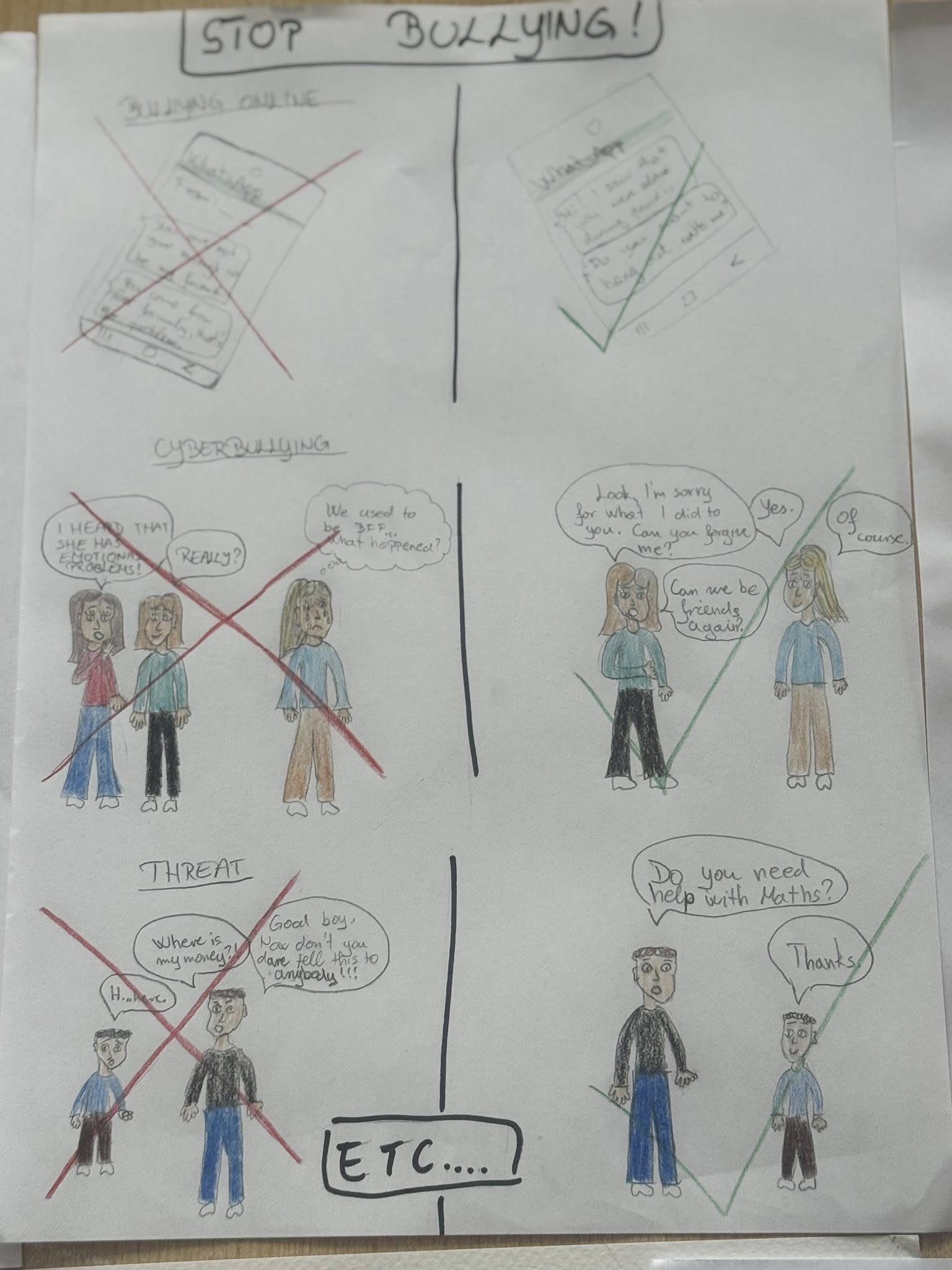 Kroz rad u grupama, ankete, pjesmu, razgovor te izradu postera „Stop bullying“, učenici su iznosili svoja razmišljanja, stavove i prijedloge te aktivno sudjelovali u raspravi o vršnjačkom nasilju i odgovornom ponašanju u digitalnom okruženju.