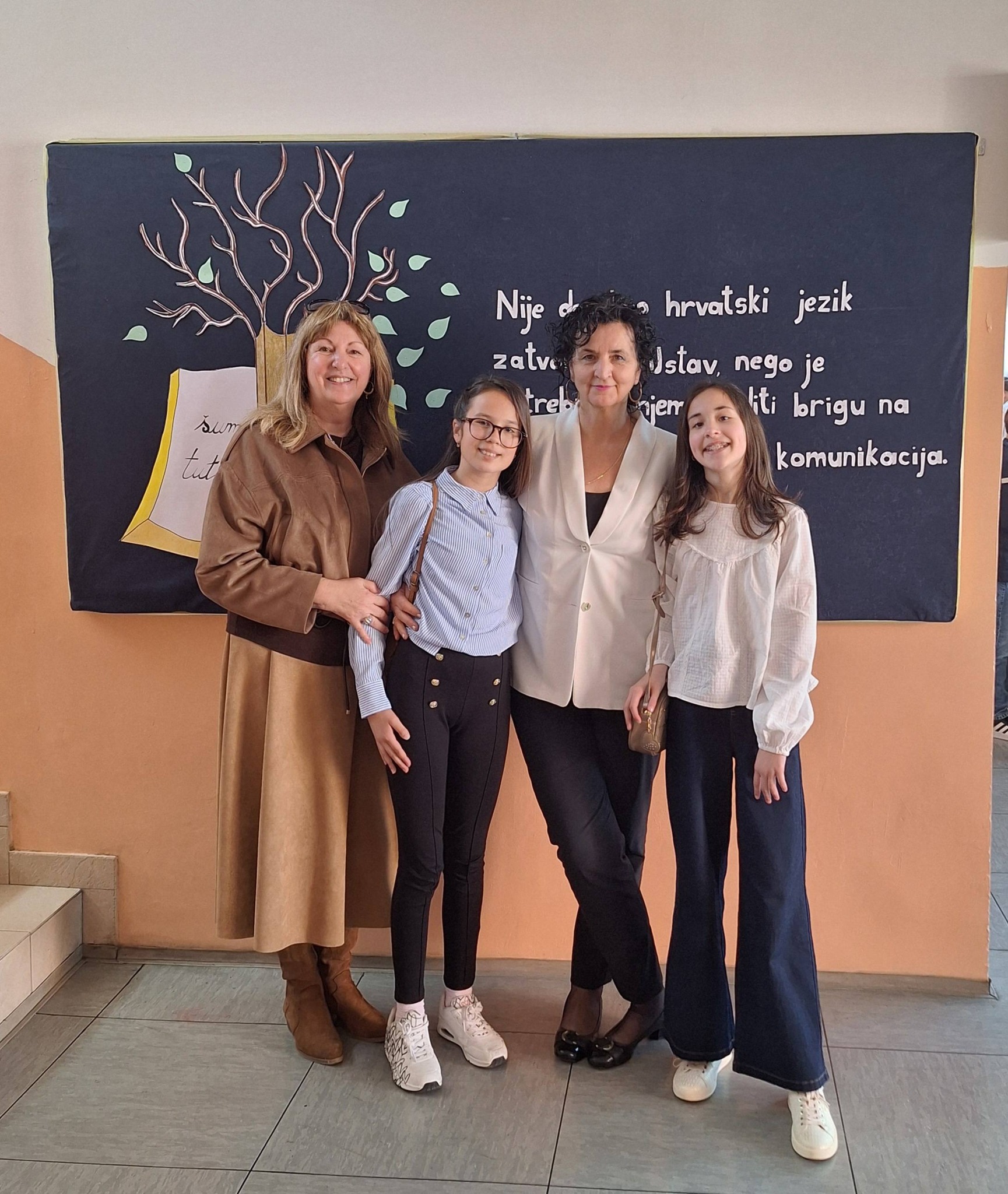 ODRŽANO ŽUPANIJSKO NATJECANJE U KRASNOSLOVUU sklopu obilježavanja Dana hrvatskog jezika danas je u OŠ Crnići održano županijsko natjecanje u krasnoslovu. Našu školu predstavljala je ANAMARIA MIŠKOVIĆ koja je krasnoslovila pjesmu "Hercegovina", ELENE NOKOVIĆ. Čestitke našoj Anamariji na izvrsnom i veoma emotivnom nastupu kojim je pobrala simpatije publike. Čestitke učiteljicama mentoricama Marini Njavro i Ivoni Čamo i ,naravno,Eleni na lijepim stihovima!