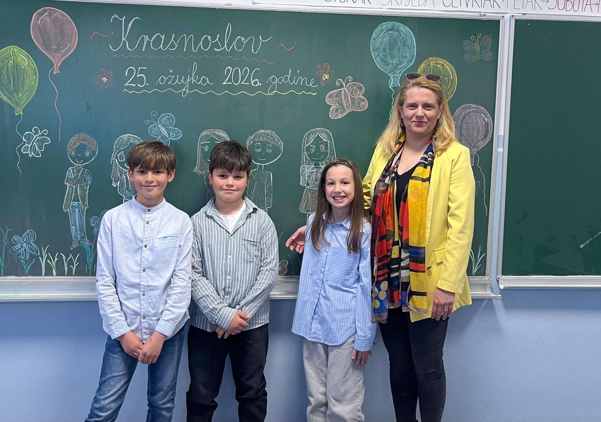 Danas je u našoj školi održano školsko natjecanje u krasnoslovu za učenike četvrtih razreda. Stručni žiri sačinjavale su: učiteljica hrvatskog jezika Marina Njavro, učiteljice razredne nastave Draženka Jogunica i Ines Raič.