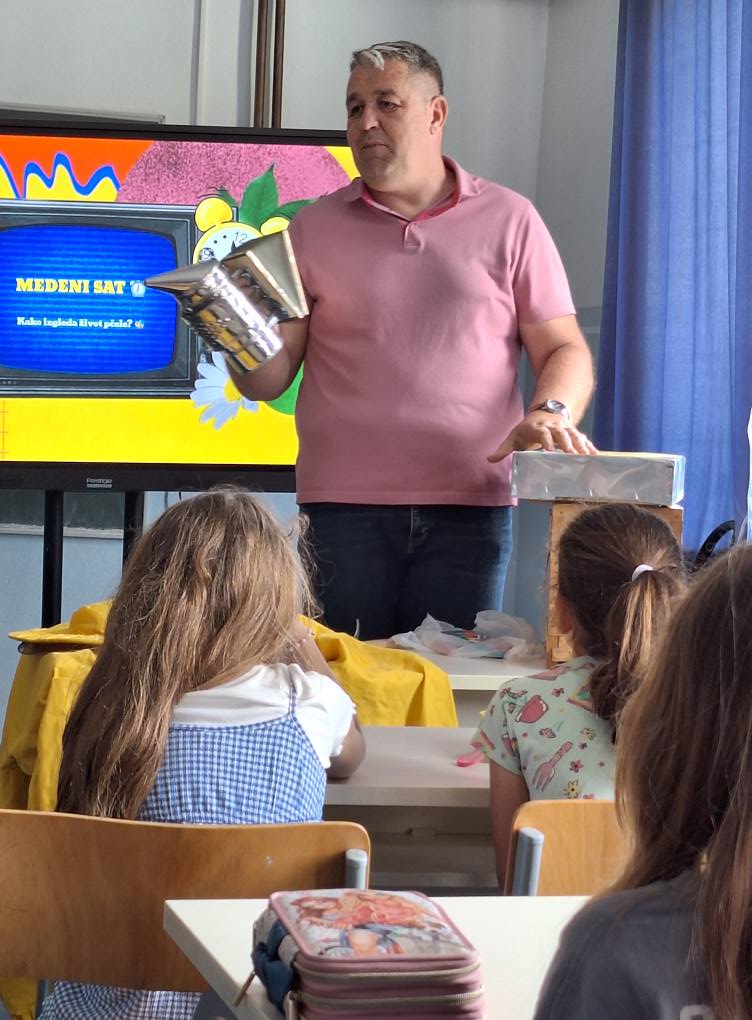 Nakon filma, OSI MEN pčelar upoznao je učenike s rekvizitima pčelarstva te kako je savršeno uređen svijet unutar košnice.