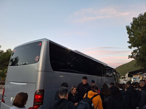 Polazak je bio u ranim jutarnjim satima i čim smo se smjestili na sjedišta autobusa, započela je vesela atmosfera. Pjevali smo, pričali, smijali se i uživali u zajedničkoj vožnji. Nastavnice su nas povremeno pokušavale smiriti, ali našu veselu energiju je bilo teško „ukrotiti“. Cijela naša vožnja je protekla u glazbi i smijehu.