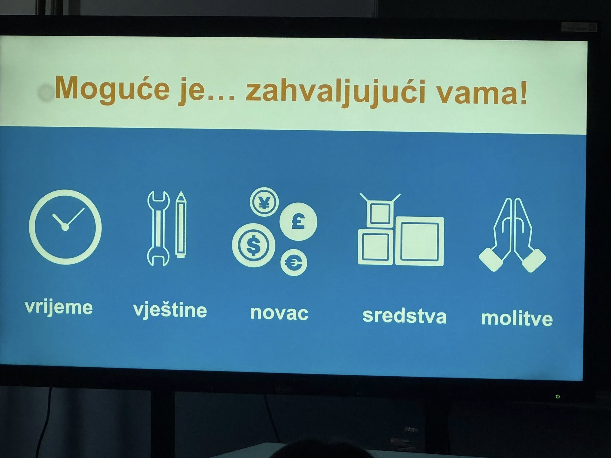 Predstavili su knjigu osnivača organizacije Mary's Meals, Magnusa MacFarlane-Borrowa, "Baraka koja je nahranila 2 milijuna djece" te kroz prezentaciju upoznali nazočne s djelovanjem organizacije u 16 zemalja svijeta. Moglo se tu čuti i o tome koje su dnevne potrebe čovjeka glede nutritivnih vrijednosti, a vrijedni kuhari su za to vrijeme spremili i servirali originalnu kašu, koju djeca u siromašnim zemljama konzumiraju kao dnevni obrok. Poštar je tijekom sata donio prigodne promidžbene letke o organizaciji Mary's Meals, a dječja srca su na papiriće ispisala svoje ideje o uključivanju u ovu veliku humanitarnu obitelj.