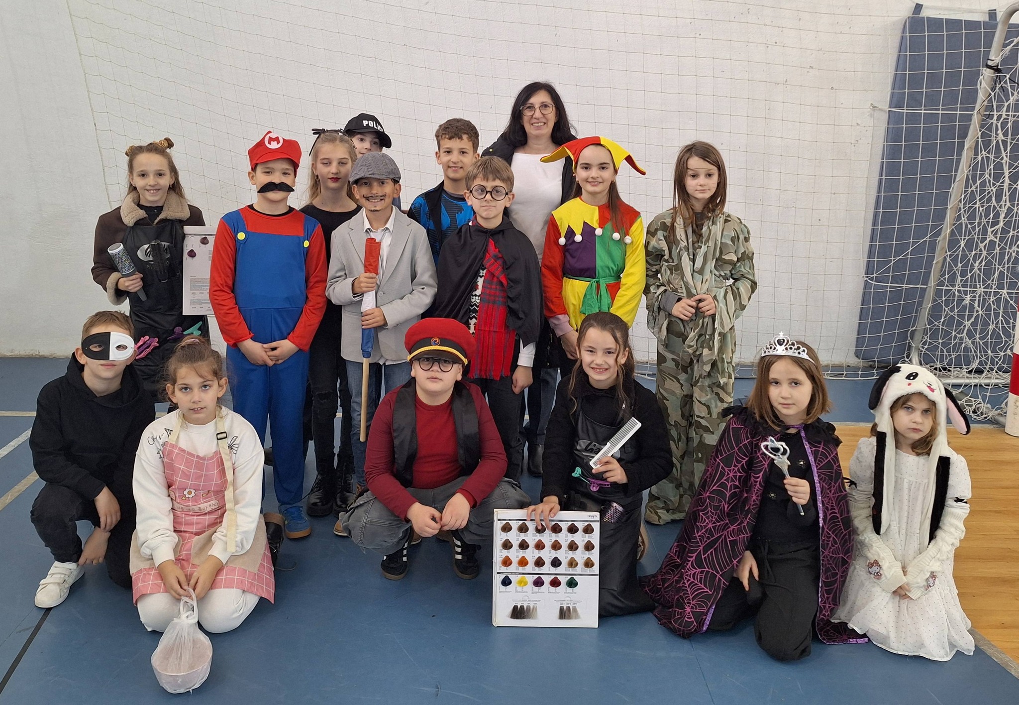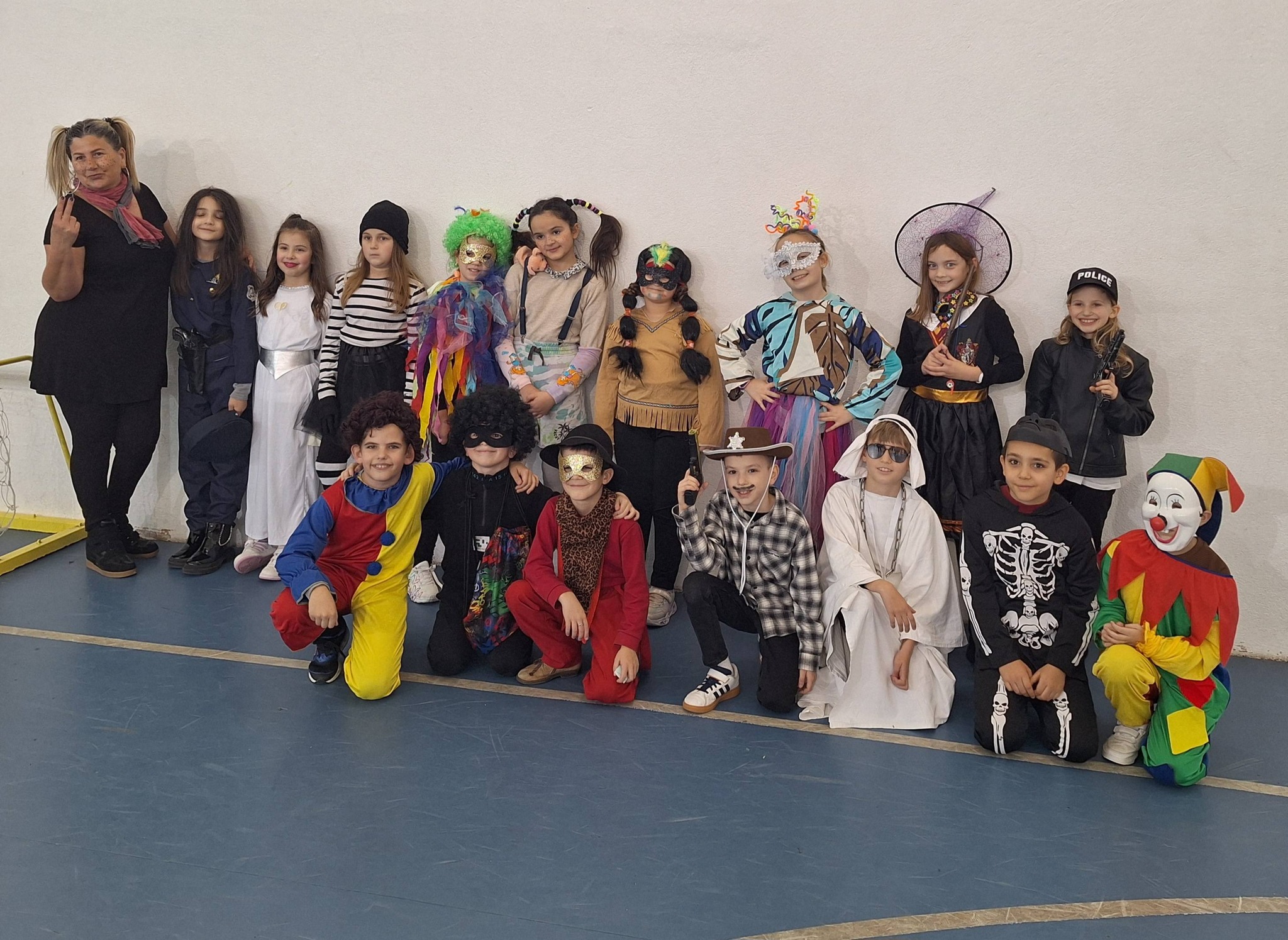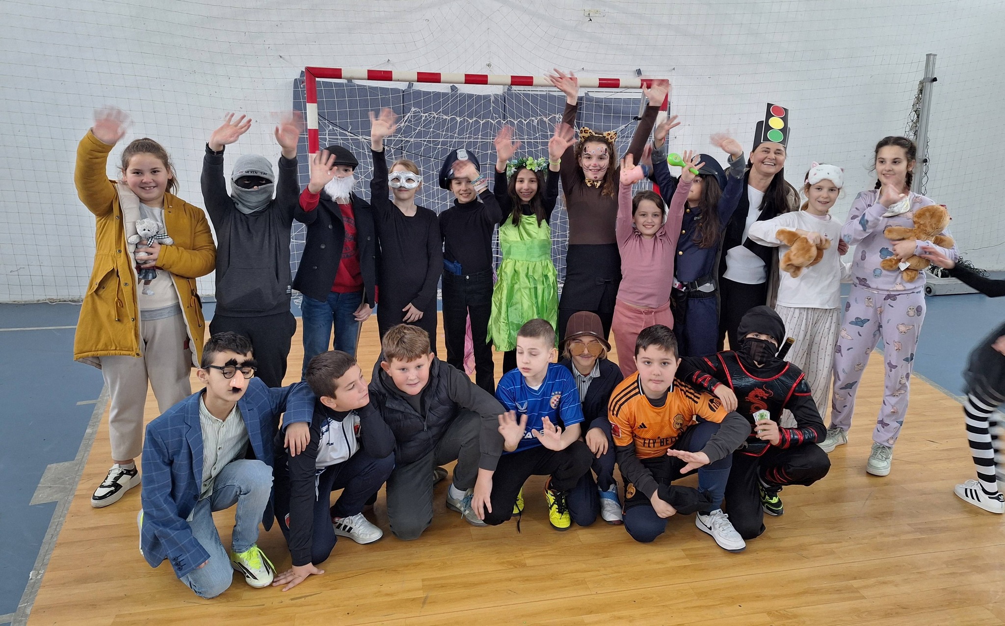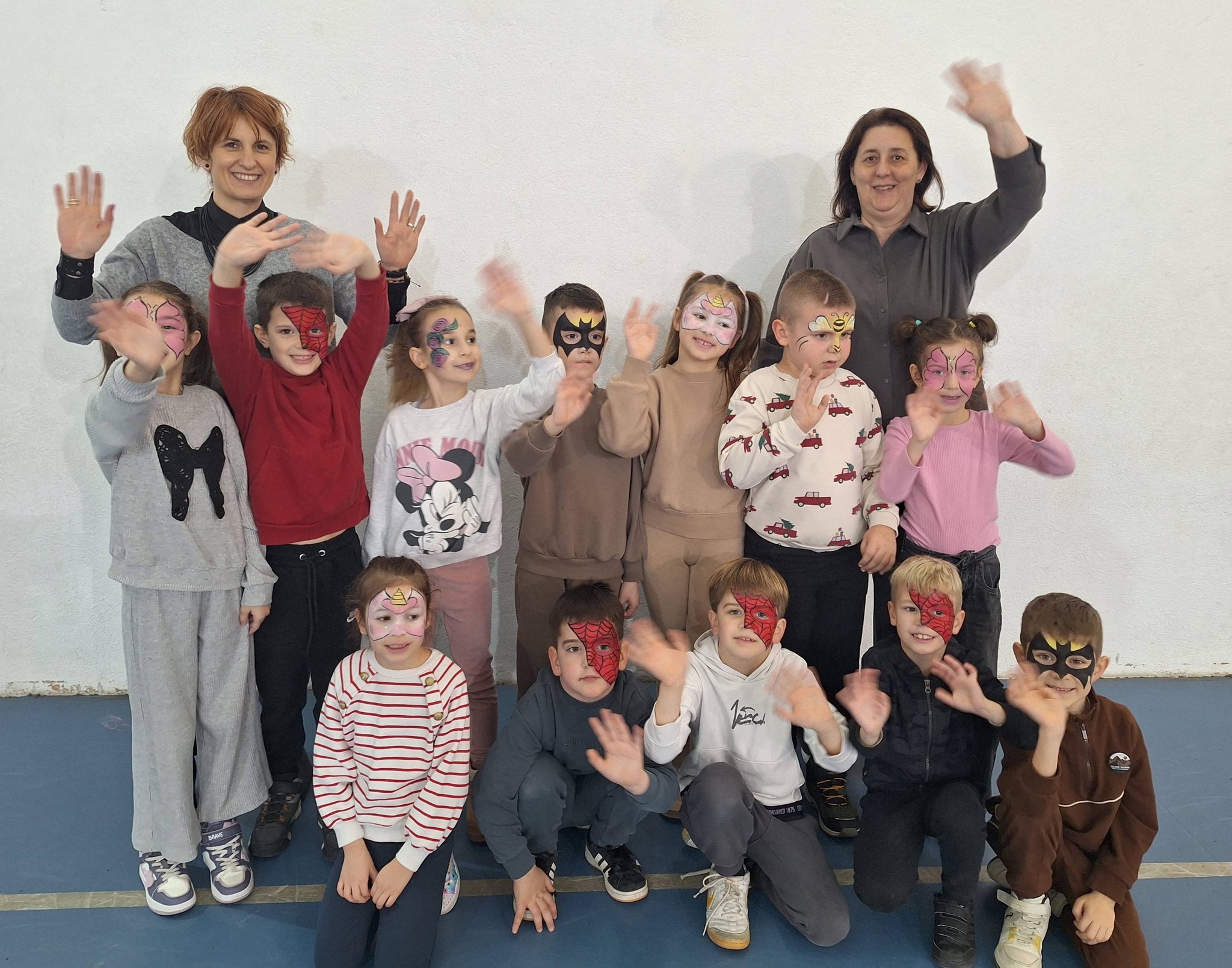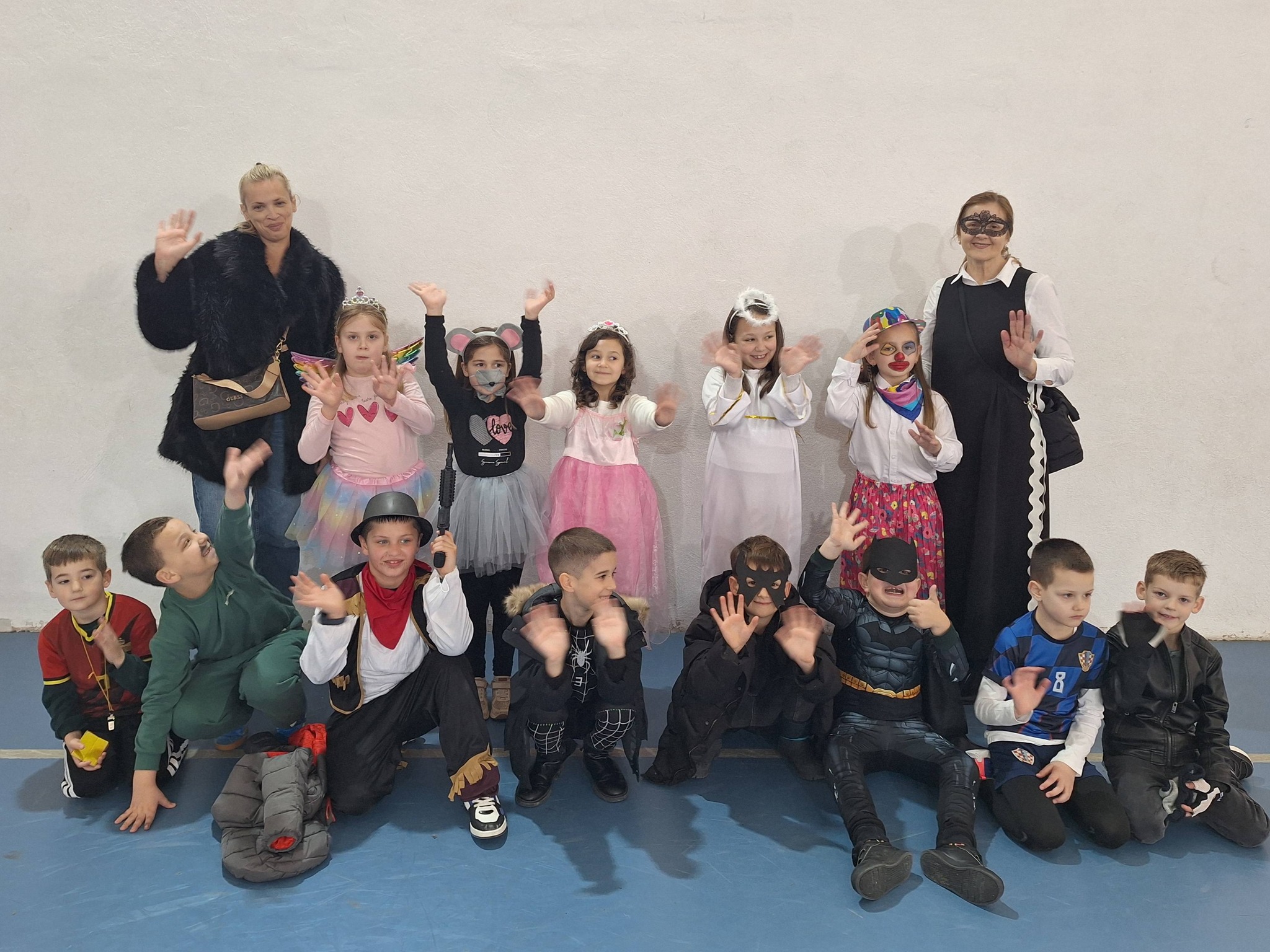 Današnji maskenbal u školi bio je pravi mali festival radosti i mašte.Školska dvorana bila je ispunjena šarenim maskama, svjetlucavim kostimima i veselom glazbom. Bilo je tu superjunaka, princeza, klaunova i raznih neobičnih likova.Neki su kostimi bili strašni, neki smiješni, a svi zajedno učinili su dvoranu čarobnim svijetom iz bajke. Plesali smo u krugu, vlakiću,zabalali i trusu i linđo.