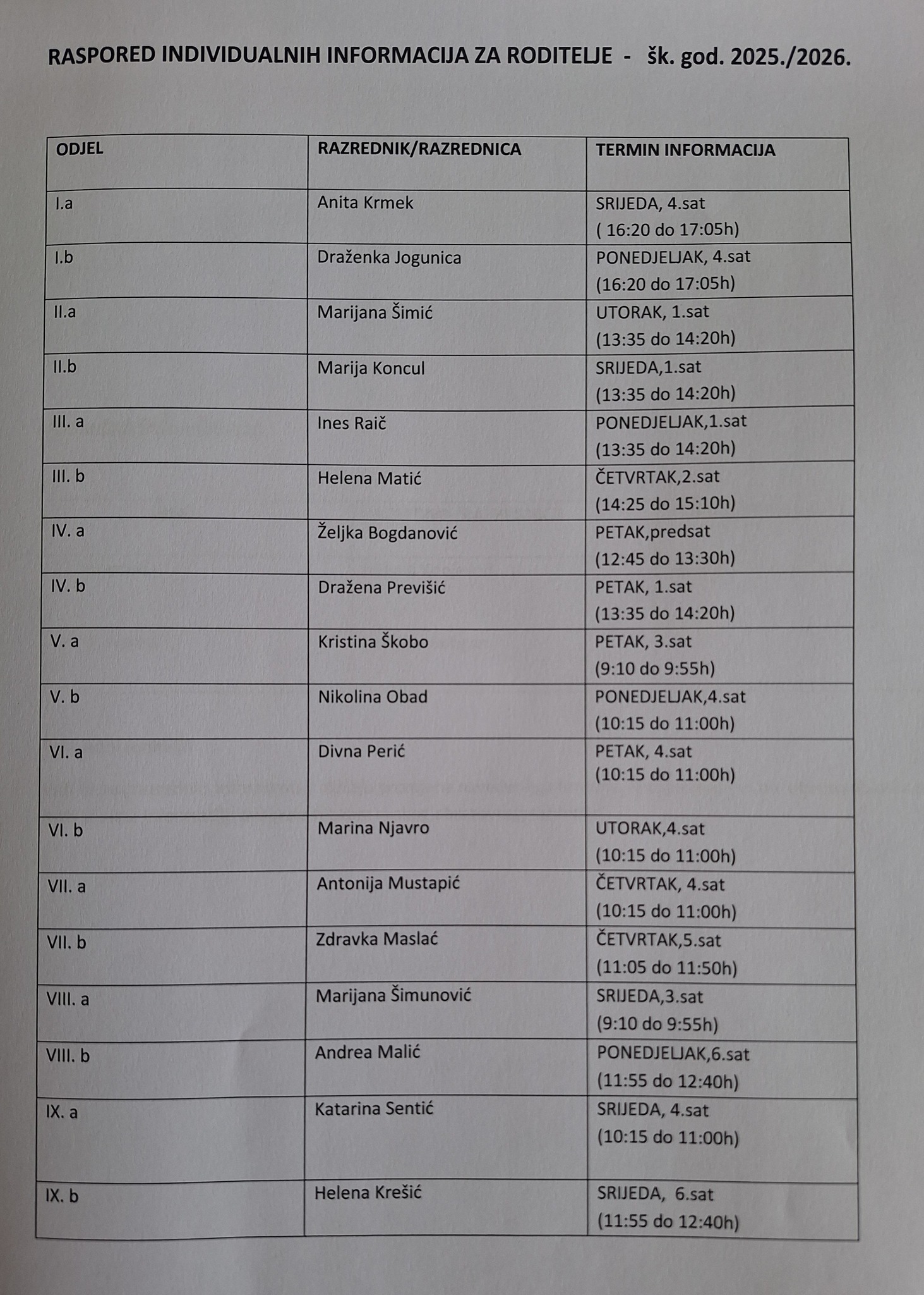 Vaši će vas razrednici informirati u slučaju promjene navedenoga termina.